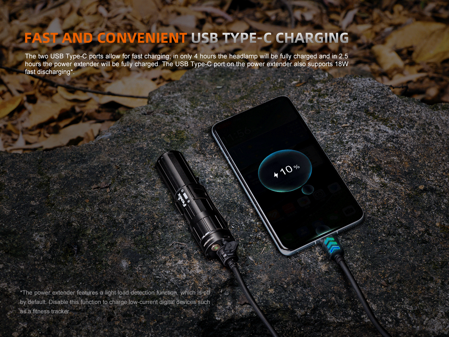 Boasting 1600 lumens of maximum output and reaching distances up to 732 feet and up to 18.9 hours of maximum runtime, the HM75R will be there to meet your needs. Charging is swift and efficient with USB-C fast charging, fully charging the headlamp in just 4 hours and the extender in 2.5 hours, while the extender also supports 18W fast discharge for your devices. It also features an intelligent brightness downshift technology that automatically adjusts the light intensity to prevent blinding when approaching objects closely.Â