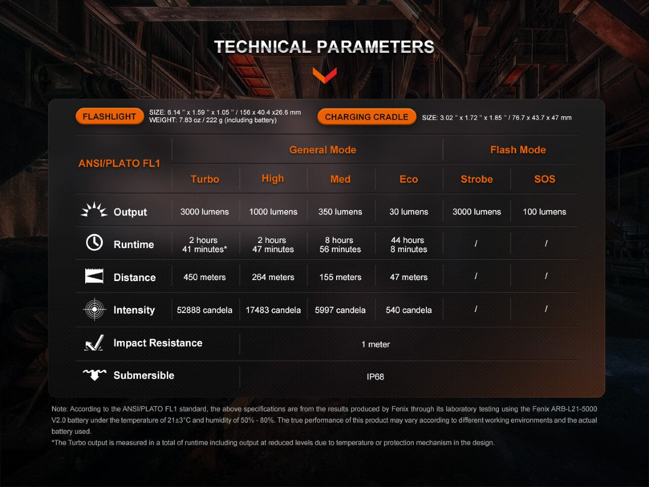 The Fenix WF26R is always available with its convenient charging cradle. Mount it on your workbench, wall, or to take on the go with the magnetic charging cable. This flashlight has two dual tail switches for easy access to four brightness levels up to 3000 lumens plus two flashing modes. A long throw of nearly 1500 feet is ideal for a range of jobs, and the 44-hour max runtime with battery-level indicator makes it perfect for extended use. Crafted from aircraft grade aluminum, the WF26R passes a 1.5 meter drop test and IP68 waterproof standard (30 minutes for 6 feet). Rely on this powerful, resilient tool for any difficult task.