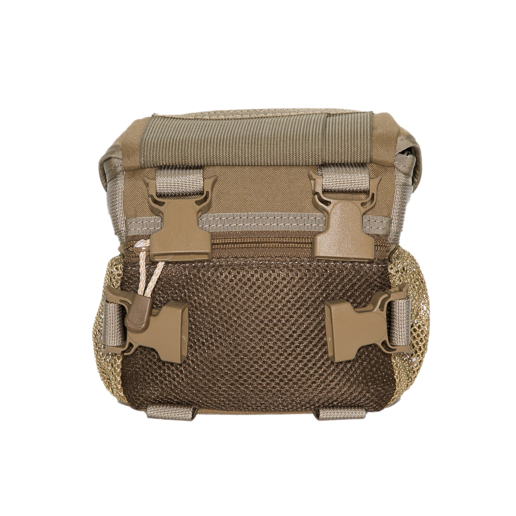 The Hybrid is the perfect combination of the rangefinder pocket of the Kodiak Cub and the mesh sides of the KISS. These are meant to accommodate binoculars up to around 42mm objective lenses. For example, most 8×42 and 10×42 binoculars would fit perfect in the compact harnesses. (Main Compartment measurements are approximately 6.5 inch tall x 6 inch wide x 3 inch deep. Front Compartment measurements for the Hybrid are approximately 4 inch tall x 6 inch wide x 1.5 inch deep. Side mesh pockets are 3 inches tall X 2.25 inches wide x 1 inch deep. Rear Compartment measurements are 4 inch tall x 6 inch wide “flat”) H.B.S (Hook and Bungee System) closure allows for quiet, easy one hand operation to open and secure the main compartment.