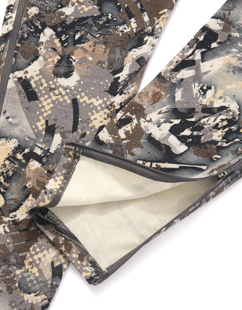 The Kaibab 300 was designed and crafted as a universal core insulation layer using Superfine Merino wool. At 300 grams per square meter, the Kaibab 300 is a powerhouse at maintaining core temperature and is designed to be layered against the skin. No other fabric breathes like Merino wool which is why Merino was the clear choice for constructing this incredible base layer. The fact that merino wool can absorb an astonishing 35% of its weight in water, without feeling wet, and rapidly discharge it into the environment makes it the most breathable material around. The Kaibab 300 bottom also features a full-length zipper making it very easy to remove without taking off your boots.