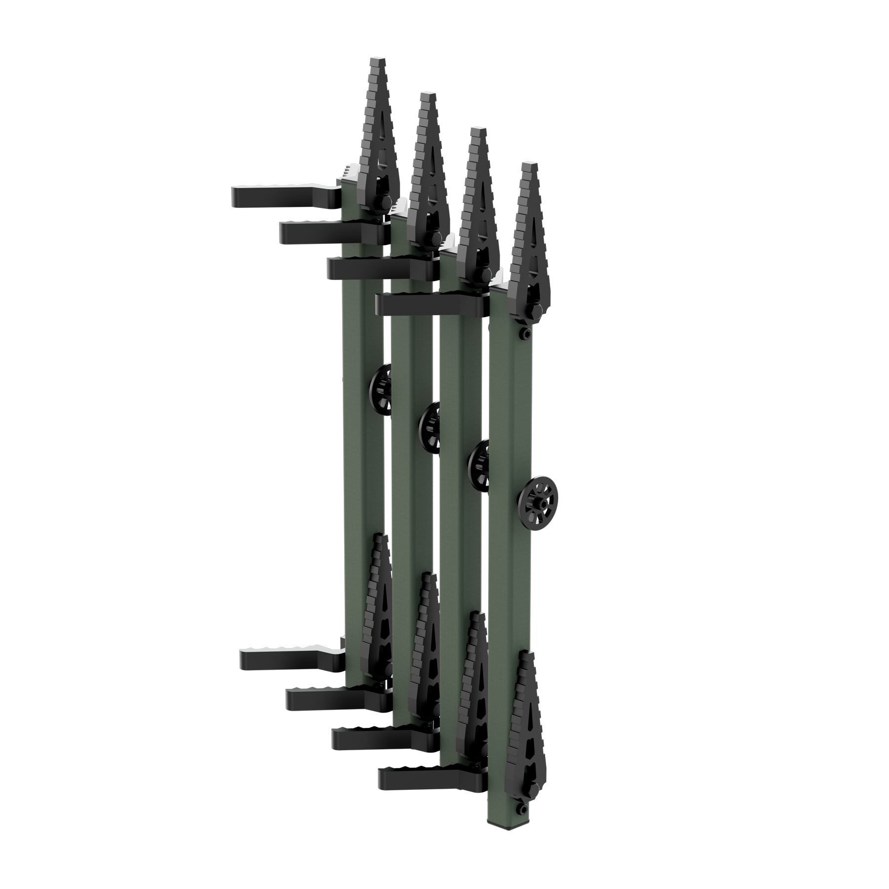 Sold in packs of four (4) or as a single stick, these 17" climbing sticks should get you anywhere from 10-12 feet up if placed moderately. The bottom step comes equipped with a buckle strap to hold all four together for easy organization and stacking. The aluminum V-Bracket locks into tree bark for a solid, silent hold even in the coldest temperatures.